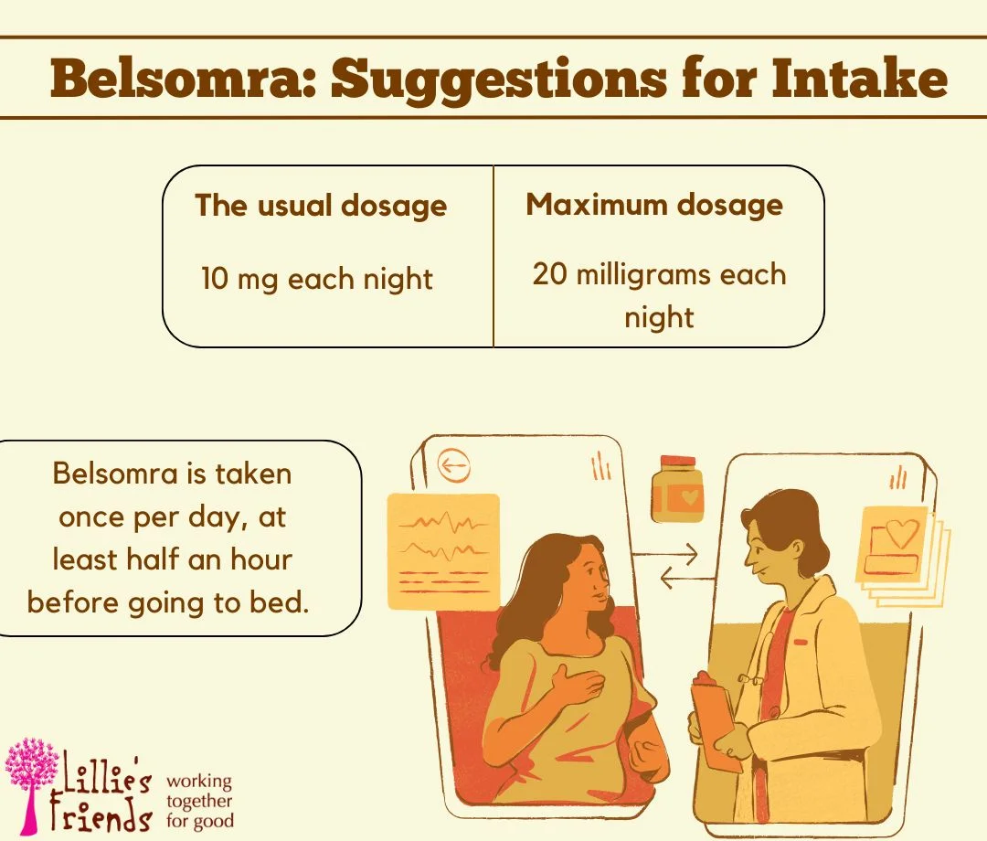 Belsomra comes in four different strengths as oral tablets: 5 mg, 10 mg, 15 mg, and 20 mg. To determine the patient’s ideal dose, the doctor first prescribes a modest amount that is progressively raised. The highest daily dosage is 20 mg, but the usual daily amount is 10 mg. It also depends on the patient’s age, other health issues, the severity of their sleep disturbance, and how well they respond to therapy.